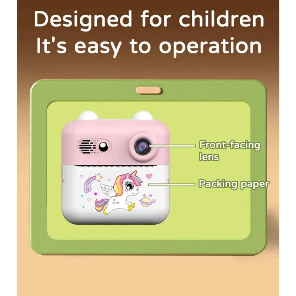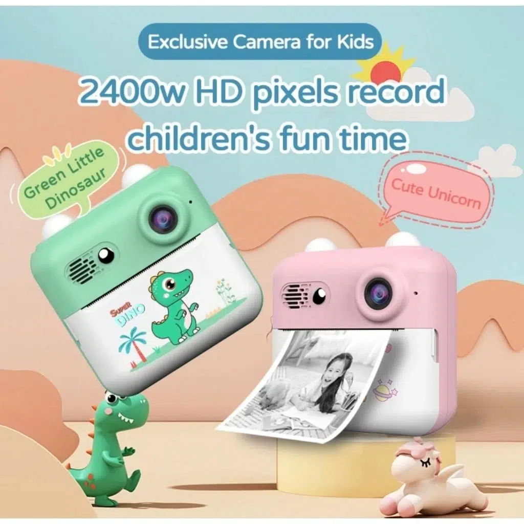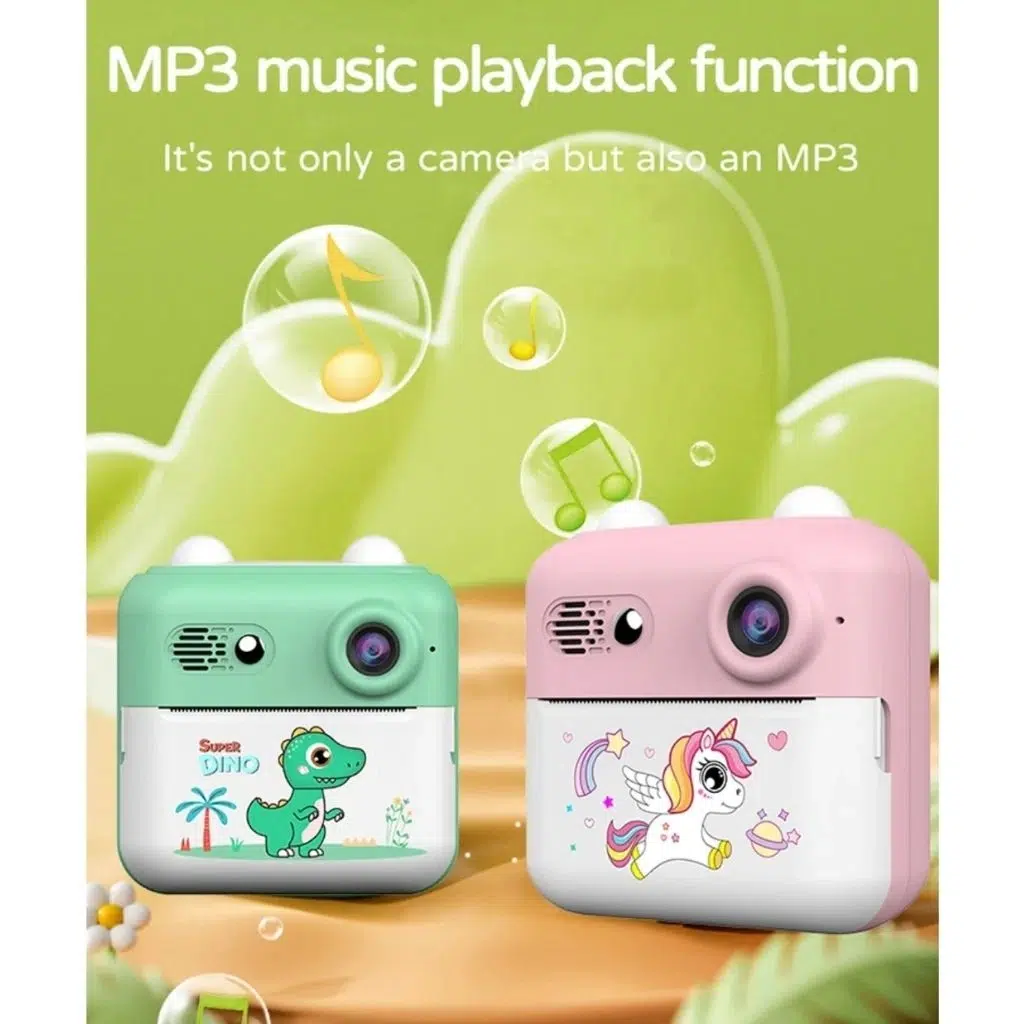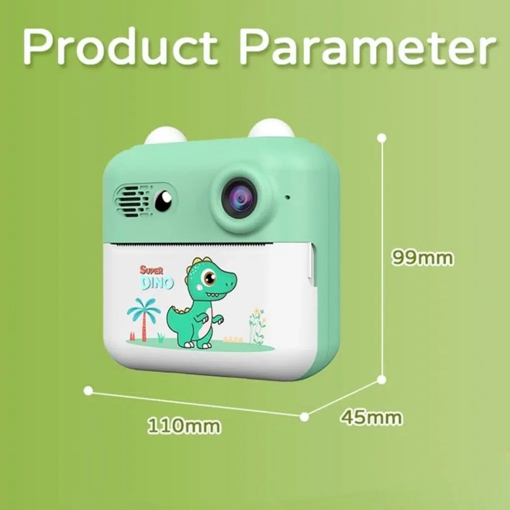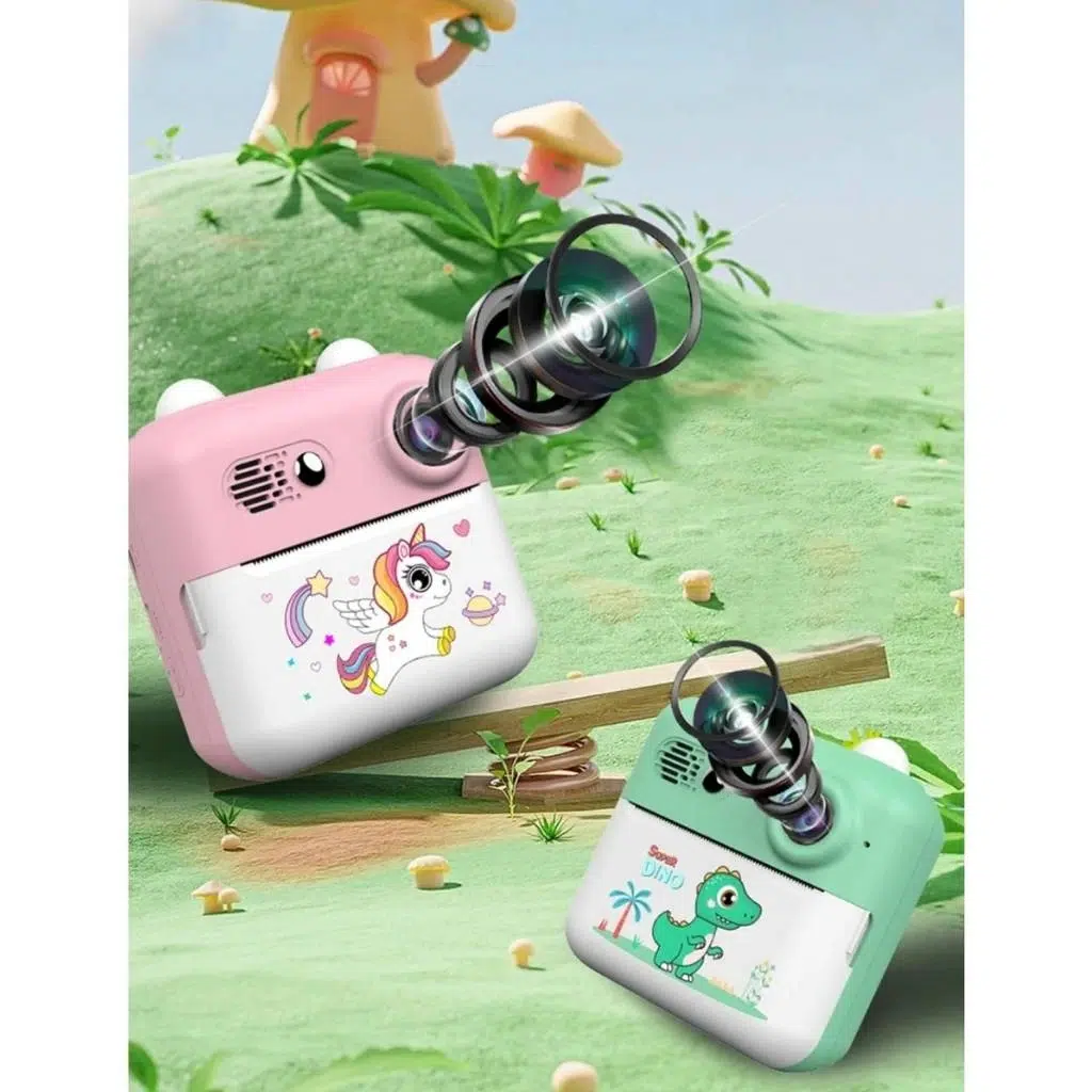 دوربین چاپ فوری دیجیتال کودکان طرح دایناسور و یونیکورن، قابلیت عکس‌برداری، فیلم‌برداری، پخش موسیقی و بازی. همراه با رول کاغذ چاپ، کابل شارژ .