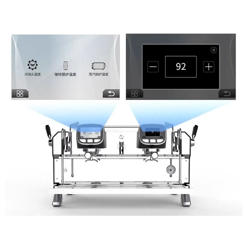 هر گروپ دارای بویلر مجزاست؛ این یعنی کنترل کامل دما و فشار برای هر شات قهوه و استخراجی یکنواخت حتی در حجم بالا. - نمایشگر دیجیتال لمسی هوشمند: