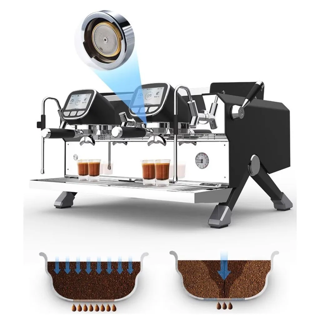 ترکیب استیل براق، آلیاژ آلومینیوم مقاوم و خطوط طراحی ایتالیاییگونه، ظاهری لوکس و مقاوم را رقم زده است. - سیستم پیشدمآوری (Pre-Infusion) دقیق: