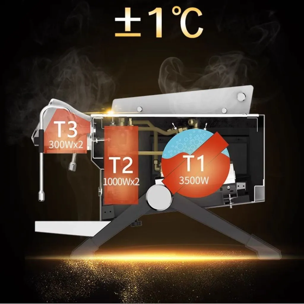 اسپرسو ساز صنعتی دو گروپ T&Z KT-3 با سیستم مولتی بویلر، کنترل دیجیتال، طراحی استیل لوکس و بخار قدرتمند، انتخابی ایدهآل برای باریستاهای حرفهای.