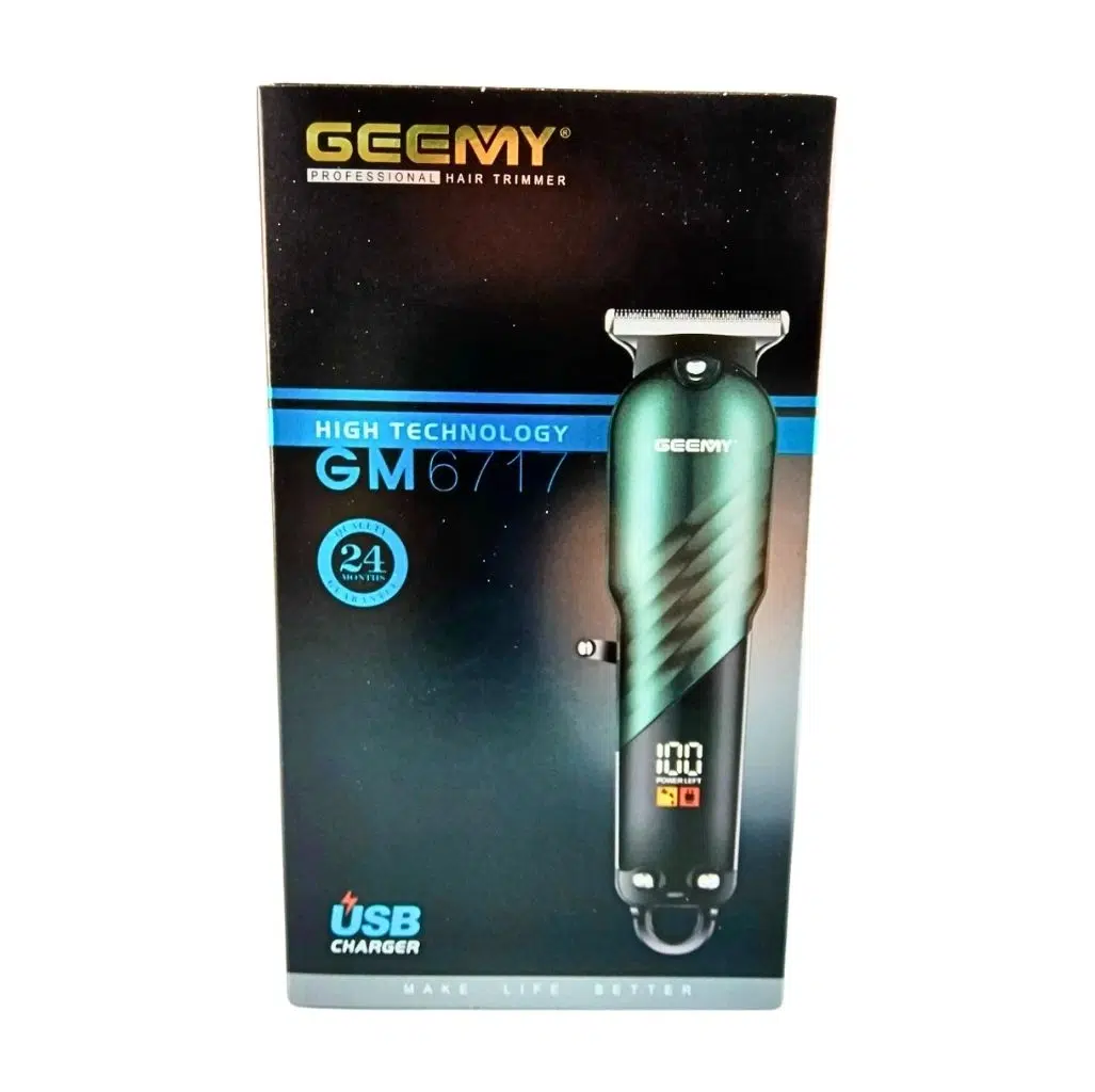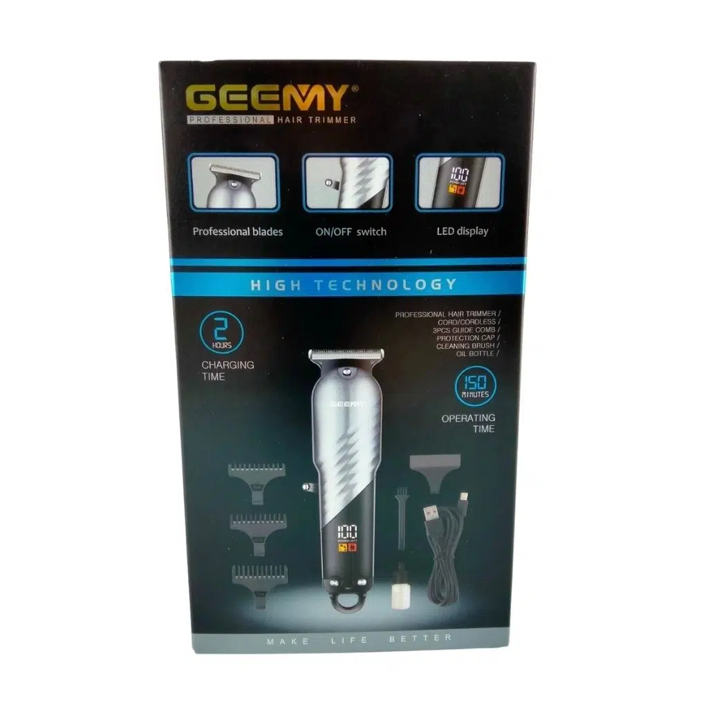 ترایمر حرفهای Geemy مدل 6717 با نمایشگر LED، شارژی USB، تیغه استیل، استفاده بیسیم/سالن