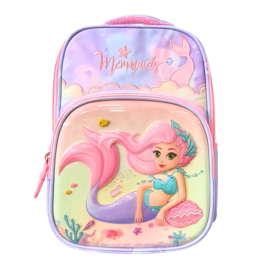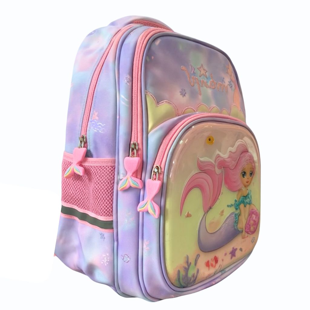 کیف مدرسه دخترانه طرح برجسته پری دریایی با طراحی فانتزی و رنگهای شاد، انتخابی دوستداشتنی برای دختران دانشآموز است.
