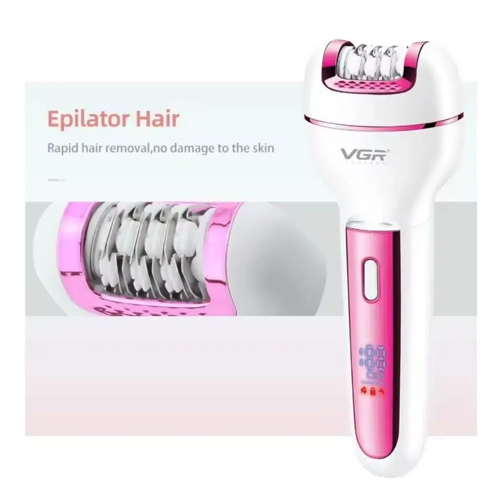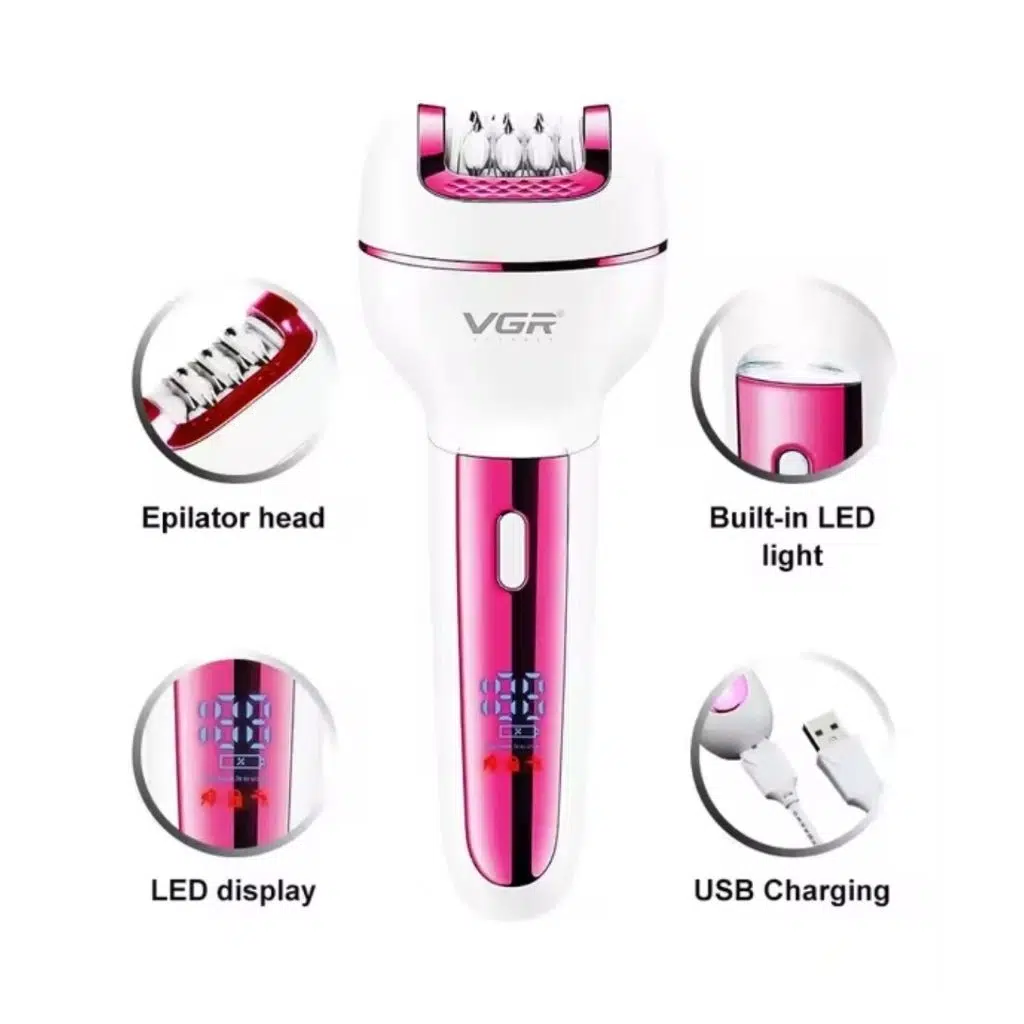 اپیلاتور و شیور سهکاره وی جی ار 732 با سریهای متنوع، چراغ LED و باتری شارژی؛ راهی راحت برای پوستی نرم و بدون مو در خانه.